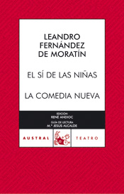 EL SÍ DE LAS NIÑAS, comedia de crítica social, es considerada la obra maestra de Moratín. Doña Irene, viuda y madre de Paquita, concierta el matrimonio de su hija con don Diego, un rico solterón. La aparición de don Carlos, sobrino de don Diego, vendrá a frustrar los planes de la viuda. En LA COMEDIA NUEVA, obra anterior a EL SÍ DE LAS NIÑAS y en la que se aprecia la influencia de Moliere, el escritor ataca los vicios del teatro de la época. Los personajes, Eleuterio, el escritor y el pedante don Hermógenes, son a su vez el fiel reflejo de algunos competidores de Moratín en el mundillo literario. René Andioc, de la Universidad de Perpignan, sitúa la obra de Moratín en el contexto del teatro de su época.