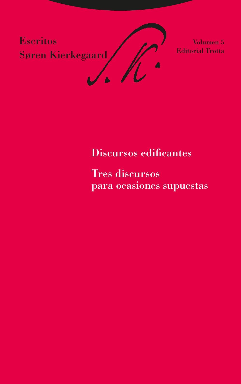 El presente volumen reúne los veintiún discursos publicados por Søren Kierkegaard entre 1843 y 1845 que marcan el inicio de su carrera como escritor religioso, conciliando así su vocación religiosa con la labor concreta del escritor, que hasta ese momento sólo había encontrado cauce en obras de carácter «poético». A partir de 1843, sus escritos de inspiración religiosa irán apareciendo en forma paralela a las obras firmadas con seudónimo, que exponen en sus discusiones de carácter teórico y en la descripción de personajes ficticios algunos de los temas abordados en los Discursos. Se trata de siete pequeñas colecciones de escritos: los dieciocho Discursos edificantes, compilados en seis series, se basan principalmente en la lectura meditada de diferentes pasajes de la Biblia, mientras que los tres discursos del último grupo se refieren a determinadas «circunstancias» en la vida de un creyente. El destinatario de todos ellos es el mismo: el existente individual o, tal como Kierkegaard lo llama en cada uno de sus prólogos, «ese individuo». Pero al dirigirse a cada individuo en particular, estos discursos lo hacen también a un individuo que, en cuanto tal, es «aquello que todo hombre es o puede llegar a ser»