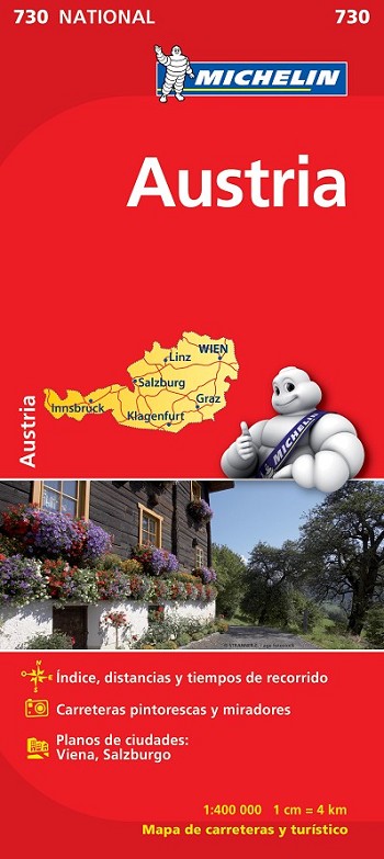 Los mapas de carreteras de la colección National disfrutan de una escala detallada que se ha adaptado a cada país o región, ofreciendo una cartografía fiable, a la vez que clara, para facilitar su viaje y orientación. Gracias tanto a su actualización anual como a la gran diversidad de informaciones recogidas en sus signos convencionales, mediante pictogramas de fácil comprensión, los mapas National son una herramienta imprescindible, no solo para viajar con total seguridad, sino también, gracias a las informaciones turísticas que incorpora, para descubrir nuevos países o regiones. El Mapa National Austria, editado a escala 1/400 000, guarda además otros interesantes contenidos, tales como carreteras pintorescas y miradores, un índice de localidades, cuadro de distancias, tiempos de recorrido, y planos de las ciudades de Viena o Salzburgo. Incluye signos convencionales en italiano, inglés, francés y alemán.