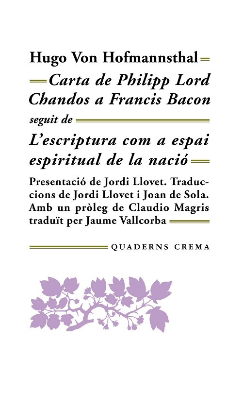«La Carta de Lord Chandos constitueix no ja el grau zero de l?escriptura, sinó de la poètica de Hofmannsthal: constitueix el manifest del desmai de la paraula i del naufragi del jo en el fluir convuls i indistint de les coses que ja no són nominables ni dominables pel llenguatge. En aquest sentit la narració és la denúncia genial d?una condició exemplar del segle XX». CLAUDIO MAGRIS