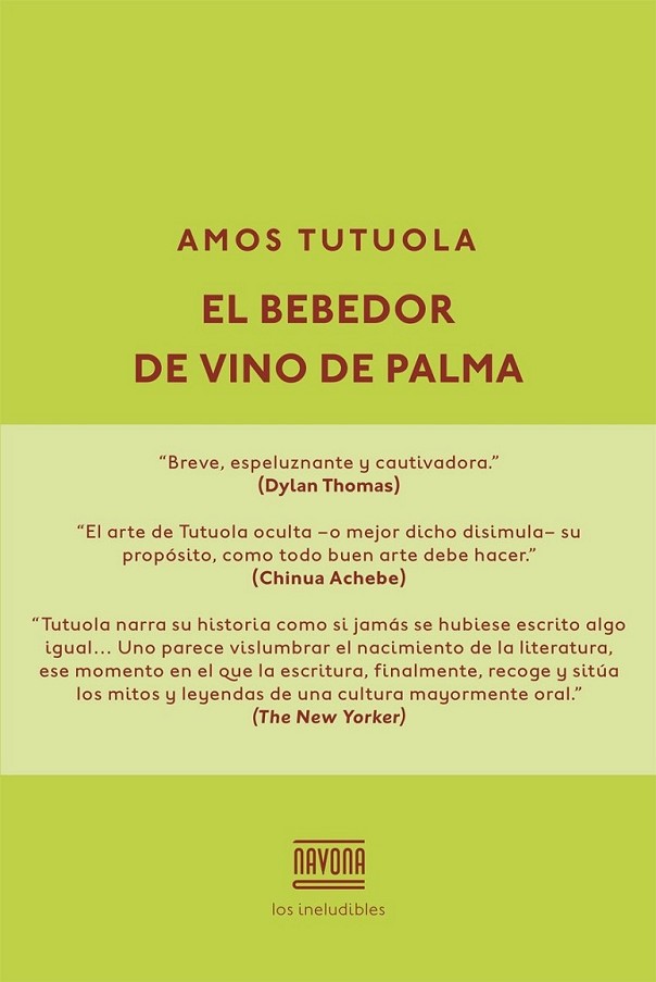 El bebedor de vino de palma narra las andanzas de un bebedor empedernido en busca del paradero de su sangrador de vino, fallecido repentinamente, en la tierra de los muertos. Un periplo por bosques, montes y aldeas en el que nos adentramos en un territorio mágico poblado de espíritus, seres maravillosos y animales feroces. El bebedor deberá enfrentarse a multitud de peligros y obstáculos, que superará gracias a su astucia y al uso de todo tipo de hechizos y ardides. Nutriéndose de las fábulas yoruba, Tutuola forja una traviesa parodia épica narrada con un estilo directo y fresco. Una magnífica novela, ya convertida en clásico, con la que el autor se erigió en precursor de los maestros del realismo mágico y del realismo animista africano.