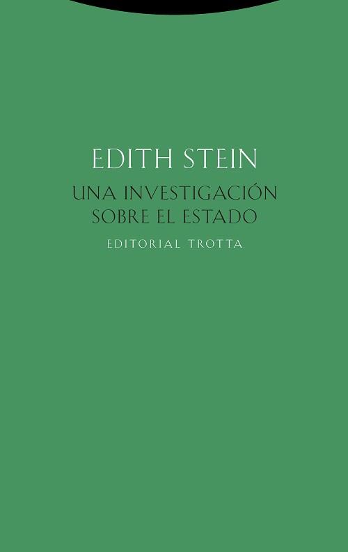 A la esencia del Estado no le pertenece como tal el tener como fundamento un pueblo, ni varios, ni una etnia, ni una nación, ni ocupar un territorio. Ni siquiera el estar constituido por seres humanos, como tampoco la promoción irrestricta de la justicia ni la salvaguarda de la moralidad. Todos estos rasgos pueden verificarse en los Estados de hecho existentes, y algunos de ellos son incluso deseables. Pero desde una consideración a priori del Estado no le pertenecen de manera estructural. No hay contradicción en la idea de un orbe de espíritus personales puros, incluso de espíritus malignos, estatalmente constituidos. Entonces, lo que una ontología fenomenológica del Estado descubre es, según Edith Stein, una colectividad de personas con características propias de una comunidad y que se rige por un único principio: la soberanía. Esta es la tesis principal de Una investigación sobre el Estado (1925). Articulado en esfera de poder y ámbito de dominio, el Estado es en realidad la unidad de las dos cosas. Distintivo suyo es su poder de autoconfiguración, que se expresa en la facultad exclusiva de sentar derecho. En la prerrogativa de ser sujeto y objeto del derecho positivo se recogen los tres poderes reconocidos modernamente al Estado, se pueden configurar formas diversas de Estado y se obliga el Estado mismo a limitar su autonomía en provecho de la libertad de las personas.