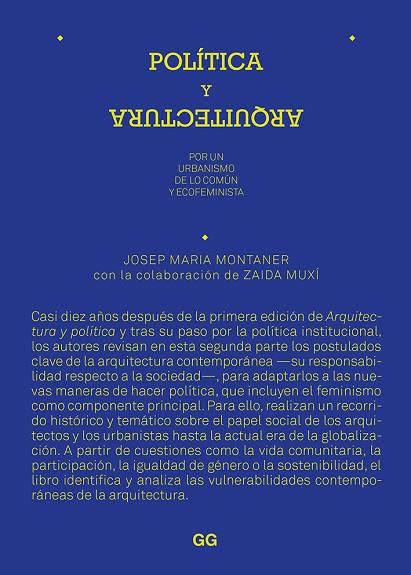 Casi diez años después de la primera edición de "Arquitectura y política" y tras su paso por la política institucional, los autores revisan en esta segunda parte los postulados clave de la arquitectura contemporánea —su responsabilidad respecto a la sociedad—, para adaptarlos a las nuevas maneras de hacer política, que incluyen el feminismo como componente principal. Para ello, realizan un recorrido histórico y temático sobre el papel social de los arquitectos y los urbanistas hasta la actual era de la globalización. A partir de cuestiones como la vida comunitaria, la participación, la igualdad de género o la sostenibilidad, el libro identifica y analiza las vulnerabilidades contemporáneas de la arquitectura.