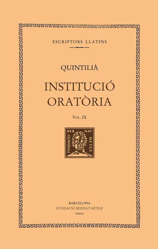 Aquest volum conté el llibre X de la Institució oratòria, sens dubte el més llegit, apreciat i influent de tota l’obra, especialment per als estudiosos de la crítica literària. Quintilià aprofundeix en els tres exercicis fonamentals per a la millora de la pràctica oratòria: llegir, escriure i parlar...