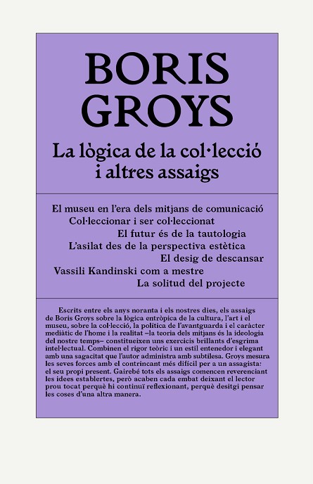 Escrits entre els anys noranta i els nostres dies, els assaigs de Boris Groys sobre la lògica entròpica de la cultura, l'art i el museu, sobre la col·lecció, la política de l'avantguarda i el caràcter mediàtic de l'home i la realitat -la teoria dels mitjans és la ideologia del nostre temps- constitueixen uns exercicis brillants d'esgrima intel·lectual. Combinen el rigor teòric i un estil entenedor i elegant amb una sagacitat que l’autor administra amb subtilesa. Groys mesura les seves forces amb el contrincant més difícil per a un assagista: el seu propi present. Gairebé tots els assaigs comencen reverenciant les idees establertes, però acaben cada embat deixant el lector prou tocat perquè hi continuï reflexionant, perquè desitgi pensar les coses d'una altra manera.