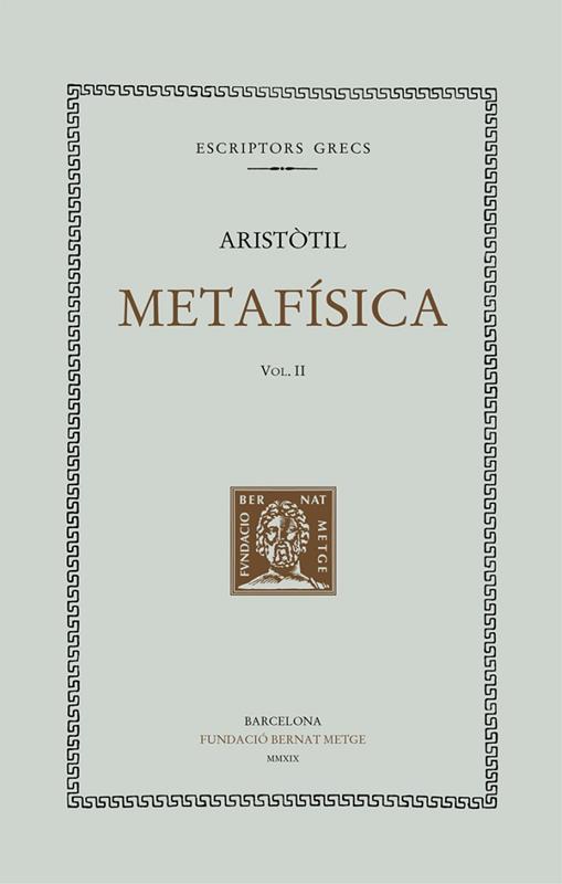 Amb la publicació del segon i últim volum, la Fundació Bernat Metge ofereix la primera edició i traducció completa al català d?un dels tractats filosòfics més influents del pensament occidental, la Metafísica d?Aristòtil, en què, més enllà de tractar diferents tipus de causalitat, forma i matèria, o l?existència d?objectes matemàtics, s?ocupa principalment sobre l?ésser com a ésser, és a dir de l?ésser en la mesura en què és. L?obra ofereix un acostament entre la teoria platònica de les formes ?que Aristòtil havia conegut a l?Acadèmia d?Atenes? i la visió del món que es pot obtenir a partir de l?observació i del sentit comú, i ho fa expandint l?argument del tercer home i reduint tot ésser al món físic, fins i tot les entitats eternes i abstractes, que no tenen una existència paral·lela.