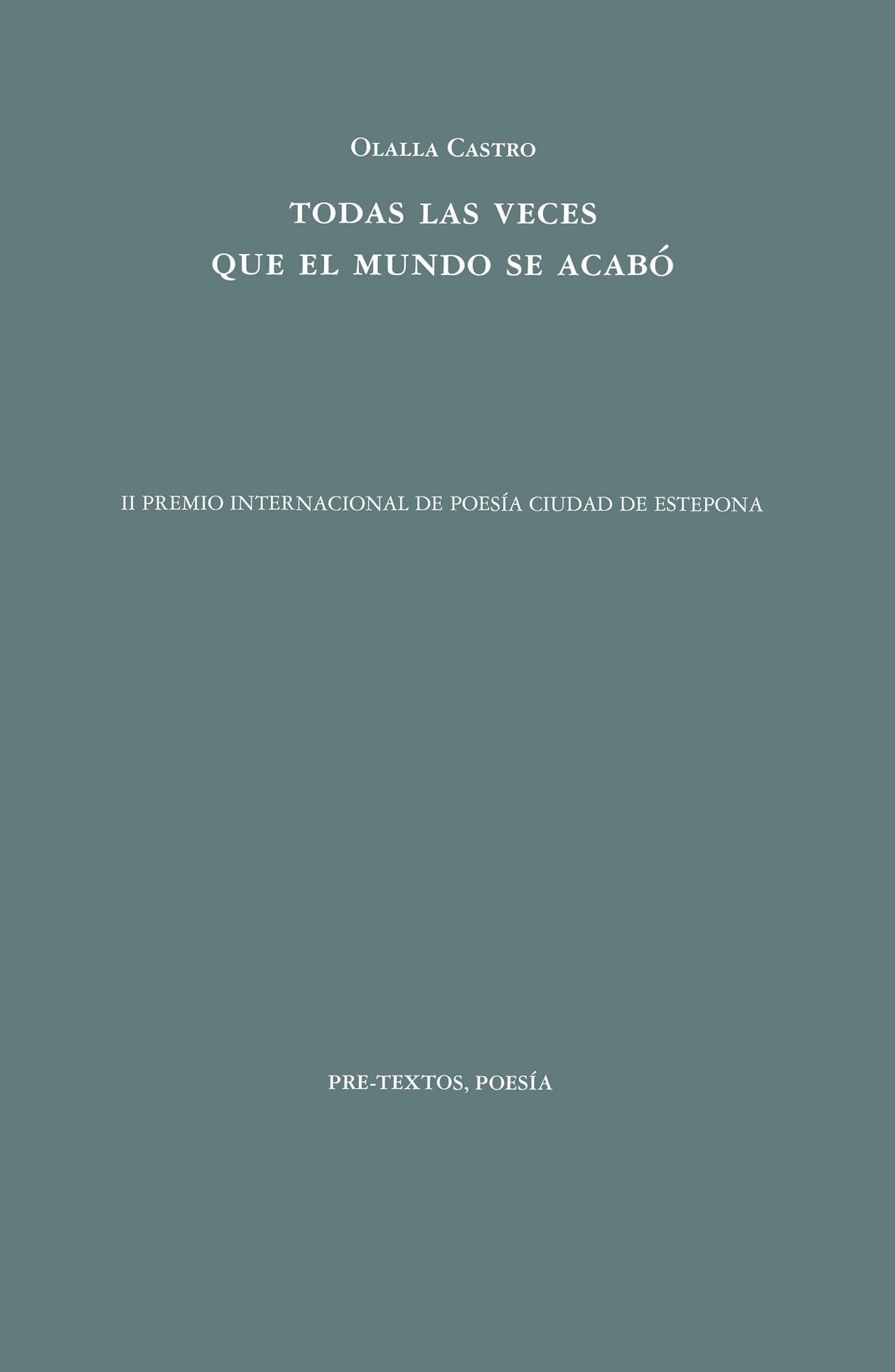 Olalla Castro (Granada, 1979) es doctora en Teoría de la Literatura y Literatura Comparada (su tesis sobre la narrativa de Enrique Vila-Matas le valió el Premio Extraordinario de Doctorado) y licenciada en Periodismo. Es autora de los poemarios La vida en los ramajes (Devenir, 2013), Los sonidos del barro (Aguaclara, 2016), Bajo la luz, el cepo (Hiperión, 2018), Inventar el hueso (Pre-Textos, 2019) y Las escritas (Almuzara, 2022), el ensayo Entre-lugares de la Modernidad: filosofía, literatura y Terceros Espacios (Siglo XXI, 2017) y las antologías Ocho paisajes, nueve poetas (Dauro, 2009) y Juan de Loxa: resistir en el margen (Diputación de Granada, 2018). Ganadora del Premio Nacional de Poesía Miguel Hernández, el Premi Tardor de Poesía, el Premio Internacional Antonio Machado en Baeza, el Premio Unicaja de Poesía y el Premio de Poesía Vicente Núñez. Sus poemas y relatos han sido recogidos en más una de veintena de antologías y traducidos a varias lenguas. Ha sido cantante y letrista de diversos proyectos musicales, como Rebelmadiaq, Sister Castro o Nour, formaciones con las que ha firmado una decena de discos y ofrecido conciertos por países como Argentina, México, Costa Rica, Jordania, Marruecos, Argelia, Francia, Holanda o Alemania. En primavera de 2020 obtuvo la beca de escritura Montserrat Roig.