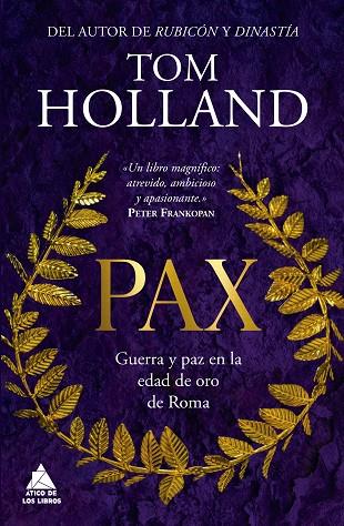 Pax narra la deslumbrante historia de una Roma en la cúspide de su poder, historia que comienza en el 69 d.?C., cuando cuatro césares gobernaron el imperio en fugaz sucesión, y termina siete décadas más tarde, con la muerte de Adriano. Desde el brillo de la capital hasta los reinos allende las fronteras romanas, el célebre historiador Tom Holland retrata el imperio en todo su esplendor. Asistiremos absortos a un desfile de espectaculares e impactantes escenas, como la destrucción de Jerusalén y Pompeya, la construcción del Coliseo o las conquistas de Trajano. Holland hace que los romanos cobren vida ante nuestros ojos, desde el más humilde esclavo hasta el emperador, y muestra cómo la prosperidad de la paz romana se construyó también gracias al poder sin precedentes de las legiones.