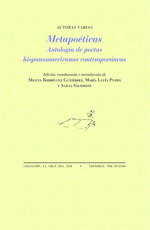 Metapoéticas. Antología de poetas hispanoamericanas contemporáneas recoge las estrategias discursivas de más de 180 mujeres poetas, contenidas en textos poéticos específicos y singulares: aquellos relacionados con la escritura y con la propia poesía. Metapoéticas es, así, una antología temática plural de poemas escritos por autoras de América Latina. Los textos se originan en un amplio período que abarca desde la segunda década del siglo xx, en que coinciden el postmodernismo y la vanguardia, hasta la actualidad.