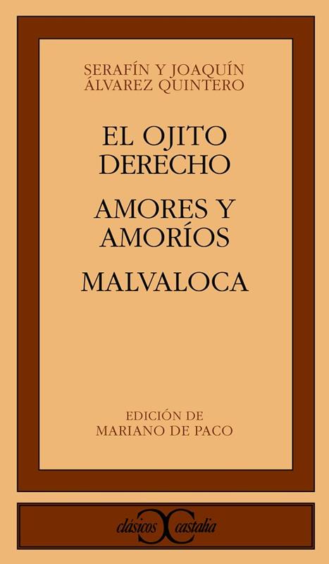 El teatro de los hermanos Álvarez Quintero ha tenido una gran presencia en los escenarios españoles durante el siglo XX; muy bien valorado en su día por público y crítica, no ha gozado, sin embargo, del aprecio académico que merecía. Su extensa producción escénica ha de juzgarse hoy, sin prejuicios, por lo que es y por lo que en su momento constituyó, no por lo que creamos que debió haber sido o por significados que los autores no pretendieron. EL OJITO DERECHO, AMORES Y AMORÍOS y MALVALOCA, textos seleccionados en esta edición, representan ejemplarmente tres modos de su obra, cuyos méritos deben ser considerados de manera objetiva y proporcionada.