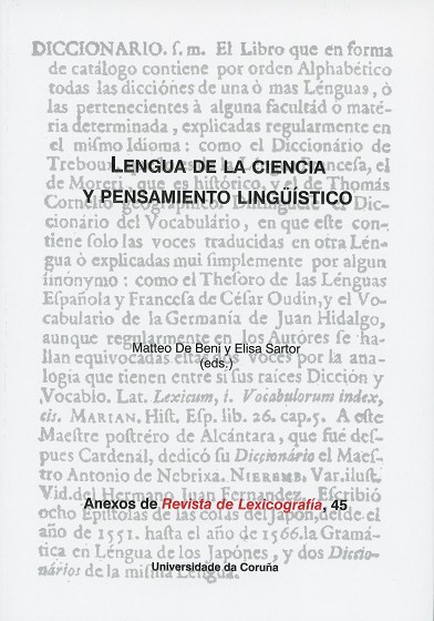 El volumen reúne dieciséis trabajos que se estructuran en tres secciones: la lengua de la ciencia en autores de la historia del español, el pensamiento lingüístico acerca de la lengua de la ciencia expresado en las obras lexicográficas, y el léxico científico y técnico del español.