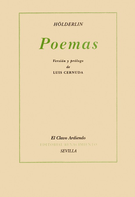 En 1935 Luis Cernuda, en colaboración con Hans Gebser, publicó en la revista Cruz y Raya de José Bergamín unas traducciones de Hölderlin. Las versiones de Luis Cernuda son fieles al espíritu de Hölderlin pero también, y más aún, a su propia poesía, como puede comprobar cualquier lector del libro que escribía por entonces, Invocaciones. En 1942, ya en el exilio, José Bergamín rescata estas personalísimas traducciones en la colección «El Clavo Ardiendo» de su editorial Séneca, que estaba al cuidado del también poeta Emilio Prados. Renacimiento inicia con este título, a modo de doble homenaje a Luis Cernuda y al José Bergamín editor, una nueva colección dedicada a textos breves de autores clásicos en el más amplio sentido de la palabra.