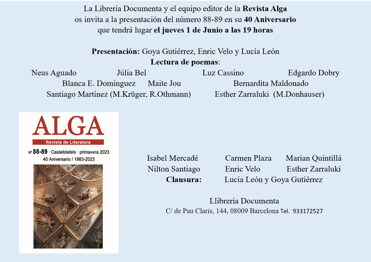 • 01/06/2023 19:00 h Llibreria Documenta - Pau Claris 144 Barcelona