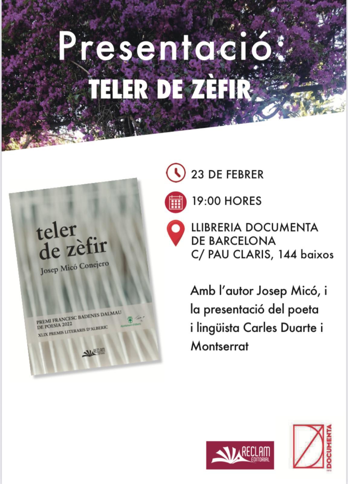 Aquest 'teler de zèfir' és la recreació poètica de les passes que han marcat l'esdevenir del camí d'un jo poètic narrador, acompanyat en aquest itinerari vital per una altra persona estimada, durant una etapa molt llarga de la vida. Un camí que estronca sobtadament la mort.