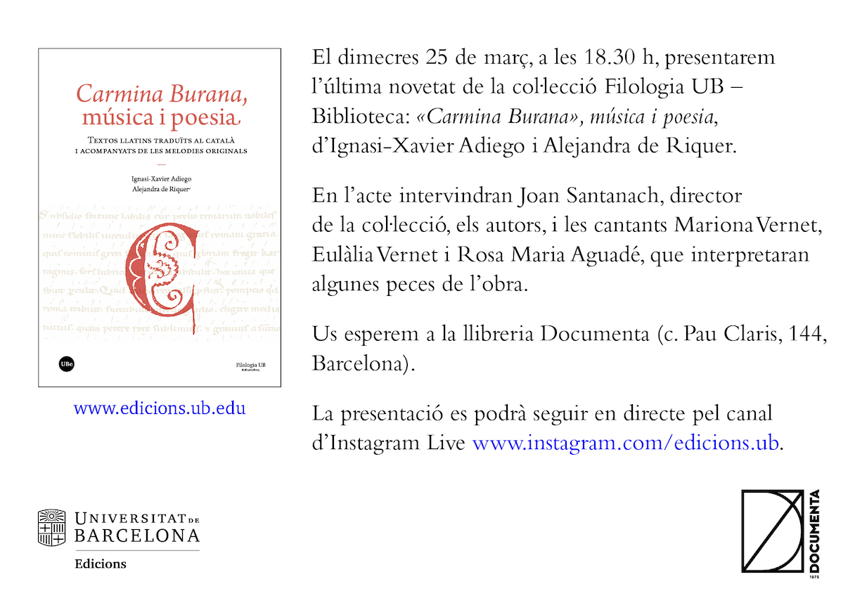 Presentació «Carmina Burana», música i poesia, d’Ignasi-Xavier Adiego i Alejandra de Riquer.