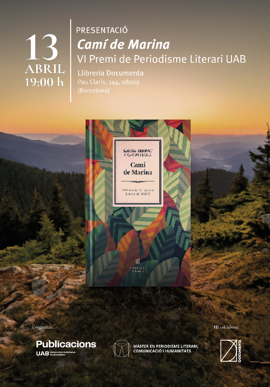 El Servei de Publicacions de la Universitat Autònoma de Barcelona (UAB) presenta el llibre Camí de Marina, de Laura Serrat, obra guanyadora del VI Premi de Periodisme Literari UAB. L’acte tindrà lloc el proper dilluns 13 d’abril, a les 19 h, a la Llibreria Documenta de Barcelona (Pau Claris, 144, 08009 Barcelona).