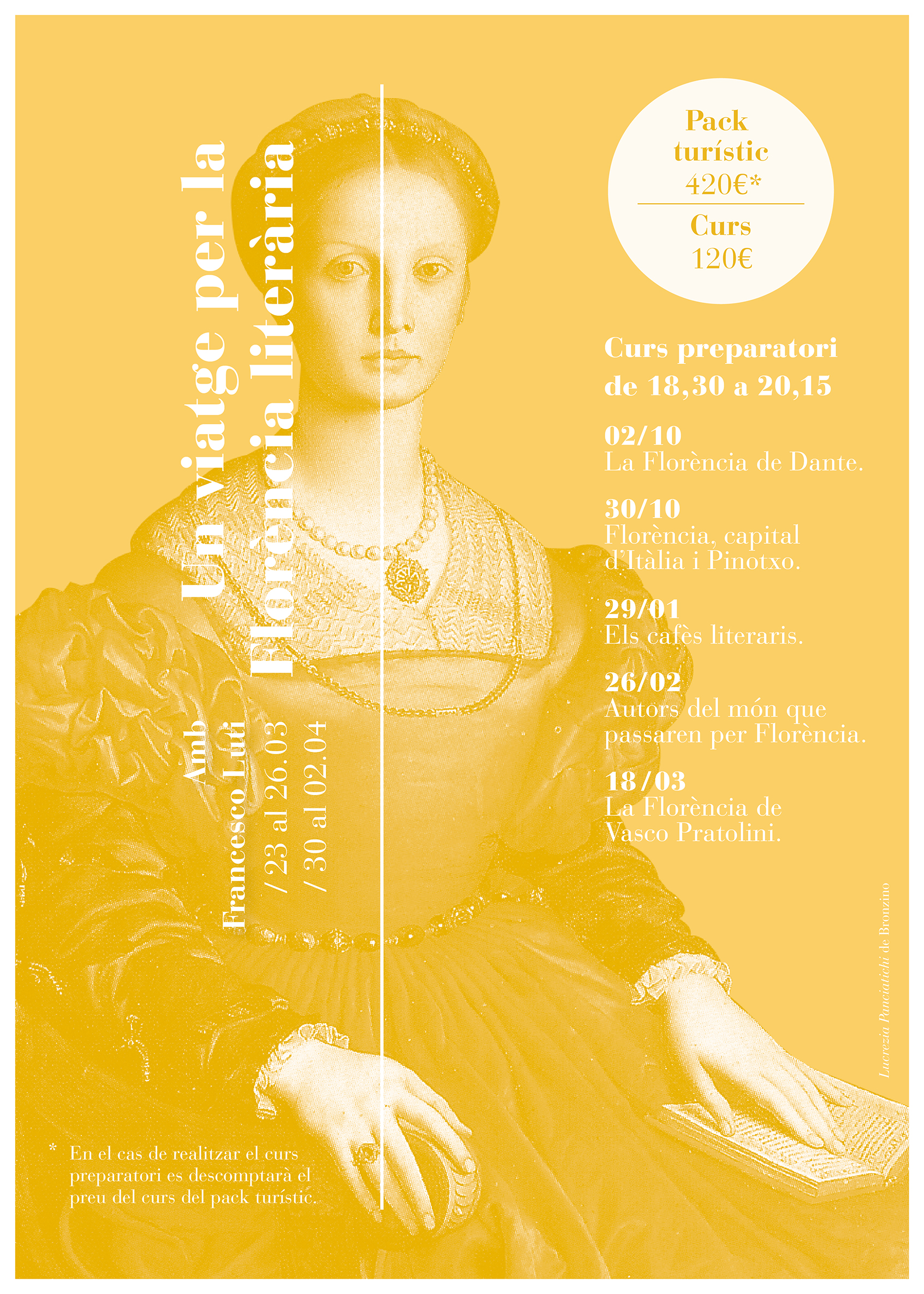 Aquest curs 2019-2020 repetim el curs de literatura Un viatge per la Florència literària. Dante, Pinotxo, els cafès literaris, Vasco Pratolini, autors d'arreu del món... El Dr. Francesco Luti*, florentí, ens proposa un curs de 5 trobades literàries —del 2 d'octubre del 2019 al 18 de març del 2020— que acabarà amb un viatge (opcional) a Florència —del 23 al 26 de març o del 30 al 2 d'abril— en què coneixerem alguns aspectes poc coneguts d'aquesta ciutat.