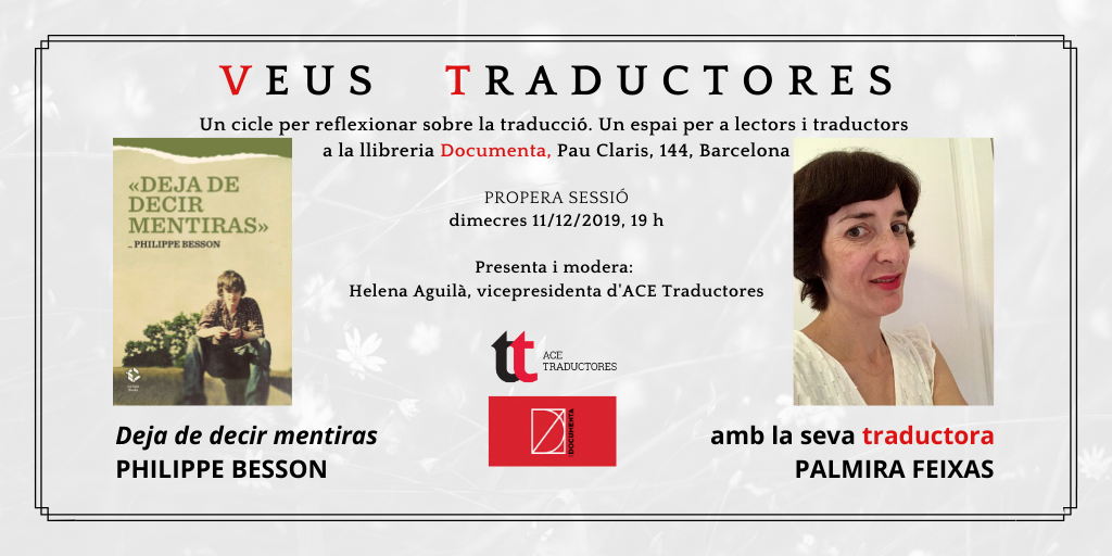 Un cicle per reflexionar sobre la traducció. En aquesta sessió tindrem a Palmira Feixas, que ens parlarà de Philippe Besson i la seva traducció de Deja de decir mentiras. Publicat per La Caja Books.