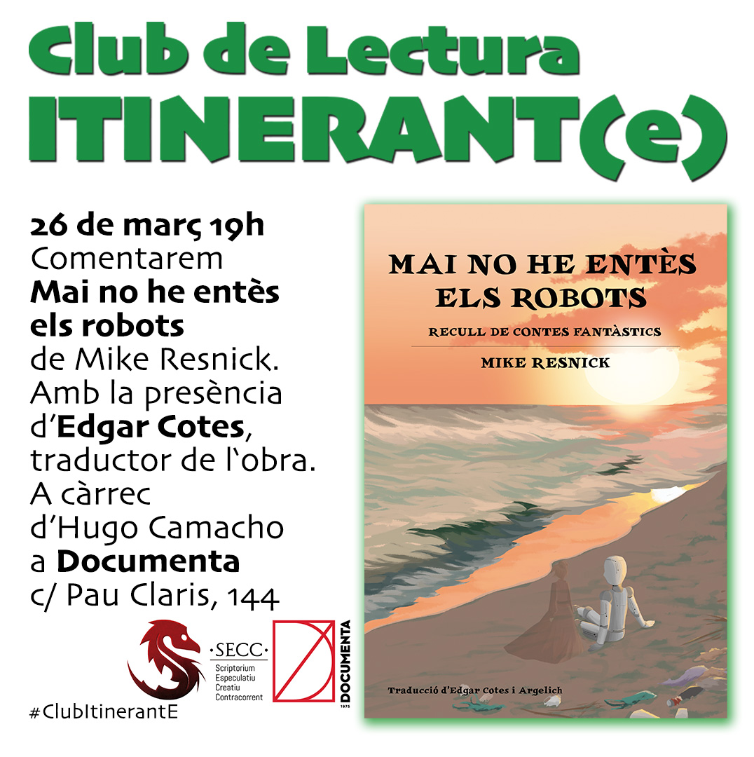 Seguint la gran iniciativa del Club de Lectura itinerant organitzat per Orciny Press, a la Documenta acollirem la sessió on parlarem del que hem tret de la lectura de MAI NO HE ENTES ELS ROBOTS, de Mike Resnick.
