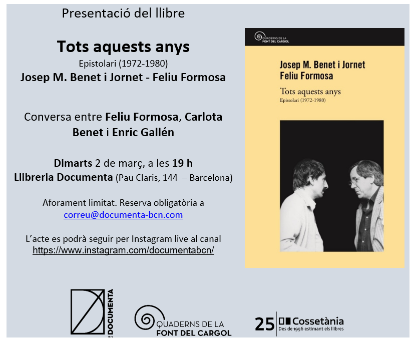 Presentem «Tots aquests anys» de Feliu Formosa i Josep M. Benet i Jornet