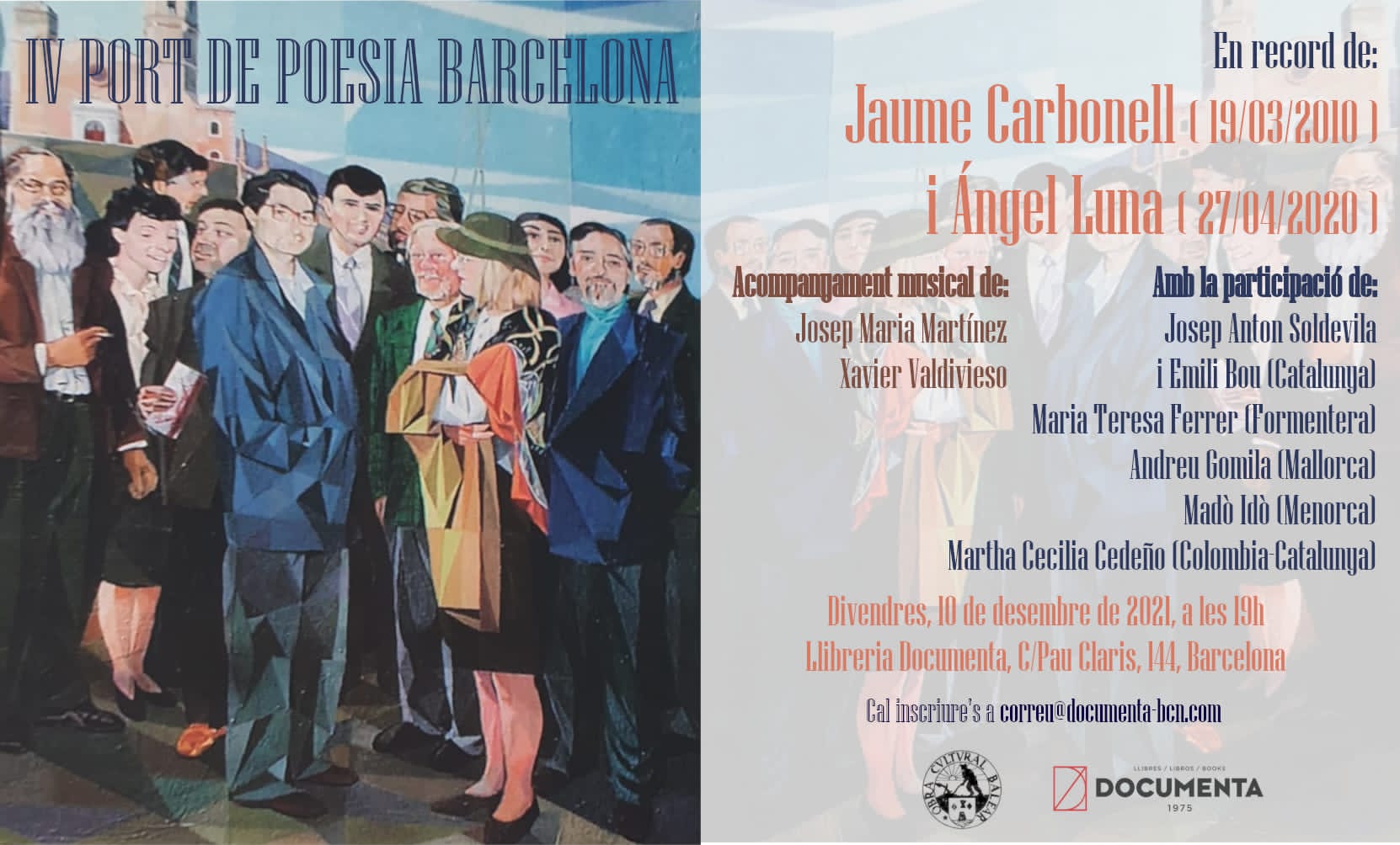 Cal reserva prèvia a: correu@documenta-bcn.com Es respectaran totes les mesures sanitàries: màscara, ventilació, gel i distància. L'acte es podrà seguir per InstagramLive en el nostre canal: https://www.instagram.com/documentabcn