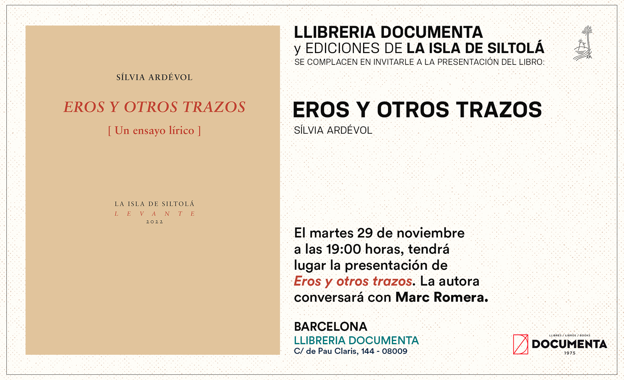 29/11/202219:00 hLlibreria Documenta, Pau Claris 144 Barcelona