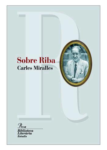 Carles Miralles, filòleg, crític literari, poeta, traductor i hel·lenista eminent, aborda en aquest volum l'obra de Carles Riba, la vocació humanista del qual és indestriable de la seva activitat com a filòleg, crític literari i traductor, entre d'altres llengües, del grec. Sobre Riba és un compendi de gairebé tots els textos de Miralles sobre Riba escrits des del 1971 i publicats en diversos mitjans. La primera part conté, en ordre bàsicament cronològic, diversos «Estudis, lectures i notes», entre els quals aproximacions al Riba crític, al Riba traductor, a la petja dels grecs en la seva producció poètica, a l'obra ribiana escrita a l'exili, al Riba humanista. La segona part consisteix en la publicació, íntegra i sense cap modificació, de «Lectura de les 'Elegies de Bierville'» (Premi Josep Carner de l'IEC del 1980), publicada per primer cop el 1979 i actualment exhaurida. En la tercera part de la «Lectura...», Miralles, empès per la voluntat de fondre poesia i món, reflexiona sobre la crisi de l'humanisme i la incerta posteritat dels versos de Riba. Malgrat l'escassa freqüentació de la poesia de Riba per part dels lectors catalans, la lúcida aportació de Miralles continua vigent, en la mesura que l'obra de Riba, potser l'home de lletres més important del segle XX català, no té caducitat.