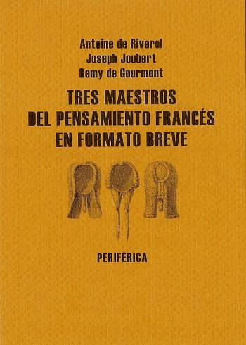 Pensamientos y rivarolianas reúne por primera vez en español una buena muestra de la obra de Antoine de Rivarol, unos de los pensadores más singulares del siglo XVIII y un clásico «secreto» de las letras francesas. Pasos en la arena forma parte de la gran tradición francesa a la que pertenece también Pen¬sa-mientos y rivaro¬lianas. Gourmont fue uno de los grandes intelectuales de su época, un escritor que influyó en muchísimos otros, hoy quizá más conocidos que él mismo, y cuyo pensamiento, profundo y lleno de ingenio, sorprende por su atemporalidad. Sobre arte y literatura ofrece una amplia selección de los pensamientos que sobre ambos temas escribió uno de los más desconocidos, pero también interesantes, escritores del tránsito del siglo XVIII al XIX: Joseph Joubert, un clásico incontestable, el gran amigo de Chateaubriand. Joubert ha marcado a varias generaciones de escritores: de Sainte-Beuve a Paul Auster, pasando por Leonardo Sciascia. «La mente más lúcida de su época», según Blanchot.