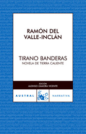 Novela excepcional y única en el paisaje literario de su tiempo, es considerada con frecuencia como la obra maestra de Valle-Inclán. Sobre el trasfondo de las dictaduras presidencialistas hispanoamericanas y las grandes revoluciones del siglo XIX, teje don Ramón una narración en la que el auténtico protagonista es el pueblo, y el tema central la degradación del hombre por el hombre. Un imaginario país, Santa Fe de Tierra Firme, vive sometido a la dictadura del general Santos Banderas, hombre cruel y vesánico al que se enfrenta una oposición empujada por alucinados románticos visionarios con aires de redentores místicos. A través del proceso esperpentizador, pone Valle el dedo acusador allí donde duele, denunciando y fustigando cualquier sistema político que rebaje la condición humana a las fronteras de la animalidad. Pero el auténtico prodigio de Tirano Banderas está en la lengua utilizada: fascinadora y desazonante. Valle-Inclán ofrece aquí un documento excepcional en el que quedan unidas para siempre las dos orillas de nuestra lengua, su infinita variedad concreta.