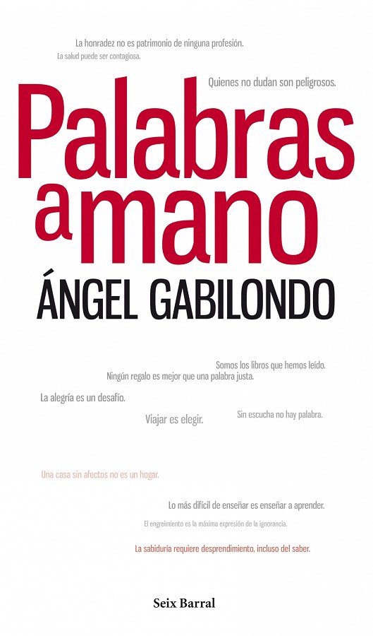 Las palabras que habitan este libro son una invitación a escuchar, a actuar. Se trata de palabras que mencionan lo que nos importa y nos incitan a buscarlo, a perseguirlo o a crearlo, porque su objetivo final es alentarnos a continuar adelante en la tarea de la vida, animarnos a vivir sin grandilocuencia, serena y reflexivamente. Desde un enfoque positivo y constructivo, Palabras a mano aborda preocupaciones comunes, personales y sociales, como la educación, la voluntad o el conocimiento de uno mismo. Sin caer en la formulación de recetas mágicas para escapar de las situaciones complicadas, la escritura de este texto señala caminos que permitan emprender el desafío de vivir con alegría. Ángel Gabilondo ofrece en este volumen una estimulante mirada sobre la realidad cotidiana, instándonos a cuestionar, a pensar de modo diferente y a observar el día a día desde un nuevo ángulo. Un libro con palabras cercanas, capaces de impulsar y de transformar.