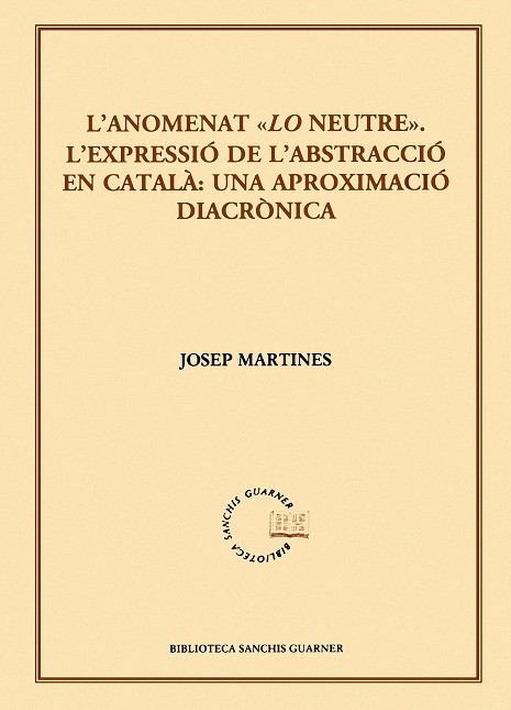 Aquest llibre fa una aproximació diacrònica a un dels temes més controvertits de la gramàtica del català contemporani: l'anomenat "lo neutre". La recerca es basa en el despullament i en l'estudi d'un corpus textual constituït sobretot per materials del català antic; atén també documentació més tardana i els parlars vius a fi de dibuixar l'evolució dels diversos recursos per a l'expressió de l'abstracció en català, entre altres: l'article definit davant adjectiu, participi, possessiu i relatiu, i amb construccions comparatives i superlatives; l'article salat; els demostratius abstractes, etc. El llibre aplica un mètode descriptiu fonamentat en l'aportació de materials documentals.
