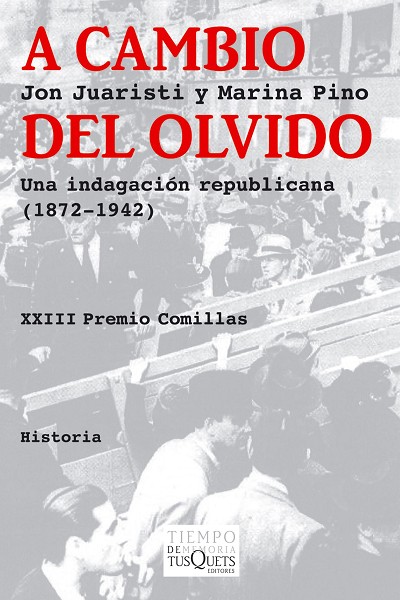 A cambio del olvido, obra merecedora del XXIII Premio Comillas, reconstruye, a través de las peripecias vitales de unos personajes singulares, un periodo crucial de la historia reciente de España. El relato rescata la memoria entrecruzada de tres familias, los Ynsa, los Pino y los Bilbao, entre 1872 y 1942. Unos años no elegidos al azar, pues el primero marca el arranque de la tercera guerra carlista española y, poco después, la instauración de la Primera República española, y, el segundo, la consolidación del régimen franquista. Con el telón de fondo de la Restauración, la monarquía de Alfonso XIII, la dictadura de Primo de Rivera, la República y la guerra civil, el lector sigue las pequeñas y grandes historias de unos personajes, antepasados de los autores, que reflejan de un modo singular e inédito la intrahistoria española. Sobresale entre ellos la figura de Tomás Bilbao (1890-1954), destacado arquitecto y político vasco, durante unos meses ministro sin cartera en el último gobierno de Negrín. Bilbao, abuelo de Marina Pino y tío abuelo de Jon Juaristi, tuvo que refugiarse en Francia al acabar la guerra, pero en 1941 estuvo a punto de caer en manos de los nazis y se vio forzado a exiliarse en México en 1942; su tragedia personal simboliza tanto la derrota de los ideales republicanos como la lucha por preservar la dignidad y la razón ante la barbarie. Destacan, también, el sufrido y heroico comandante republicano Ynsa, caído en el frente de Aragón; Antonia Pino, la mujer libre de la familia, que siguió el destino trágico de su marido policía hasta Paracuellos, o el hijo que ésta tuvo con Tomás Bilbao, combatiente anarquista durante la guerra civil y más tarde emigrante clandestino.