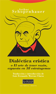 Dialéctica erística o El arte de tener razón, expuesto en 38 estratagemas es un pequeño tratado inconcluso que Schopenhauer no publicó en vida y que se encontró entre el legajo de anotaciones que el filósofo dejó al morir. Schopenhauer pretendía exponer en él, «como si de un preparado anatómico se t...