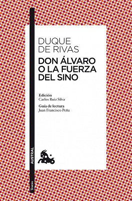 Ángel de Saavedra, Duque de Rivas (1791-1865) tuvo una vida turbulenta, apasionada, romántica y contradictoria como la época en que le tocó vivir. Luchó en la guerra de la Independencia y tras ésta se exilió por sus ideas liberales en 1823. Vivió en Londres, Italia y Malta, y en ese momento se apasionó por los autores ingleses de más prestigio entre los románticos (Shakespeare, Byron, Scott). Gracias a una amnistía, regresó a España en 1834 y heredó el título y una gran fortuna, iniciando una evolución hacia posturas más conservadoras. En 1835 estrena Don Álvaro o la fuerza del sino, primer drama español íntegramente romántico y acaso el más representativo del movimiento, pues en ningún otro se acumulan tantos elementos característicos: pasión, misterio, soledad, fuerza ciega de la fatalidad, rebelión, suicidio... Ningún otro consigue fundir tan genialmente estilo culto y llano, verso y prosa, en una acción de desbordada y enloquecida originalidad. La edición de Carlos Ruiz Silva y el apéndice de Juan Francisco Peña, facilitan los datos para que el lector pueda comprender la obra en su propio contexto.