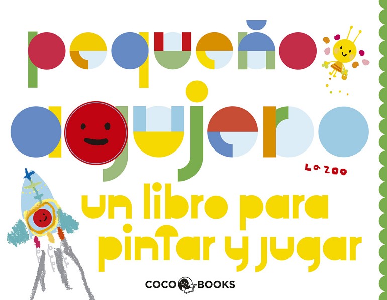 Las propuestas de este libro, están dirigidas a los niños más pequeños. A los dos años, el lenguaje verbal no se ha completado, en cambio, ya son conscientes de su lenguaje expresivo a través del trazo. Este divertido libro con páginas más gruesas y formato mayor que los anteriores títulos de La Zoo, ayuda a potenciar la imaginación con una estética actual proponiendo otra manera de pintar para esta temprana edad. El libro Pequeño agujero, es un constante diálogo entre dos pequeños agujeros, uno rojo y otro amarillo, que interpelan al niño para que coloree situaciones divertidas y surrealistas. En cada página, los agujeros se transforman: en una flor, en una cereza, en un gusano, en un robot, en un helado, en el sol... También viajan en cohete, en barco o en submarino. A veces se pierden y... ¡no saben dónde se encuentran!