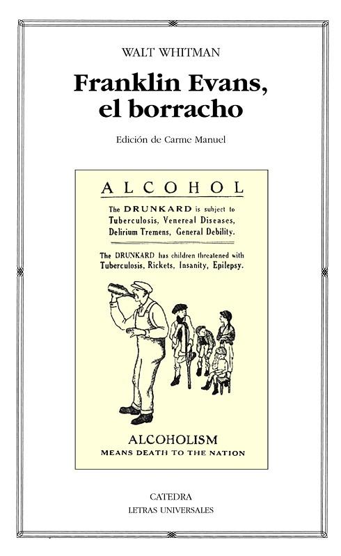 Despreciada por su propio autor, olvidada por la crítica y desconocida para la mayoría de los lectores, «Franklin Evans» es la única novela que Whitman escribió en toda su vida. La obra es un compendio de las preocupaciones y gustos del entonces joven periodista y popular autor Walter Whitman, quien una década más tarde se convertiría en Walt Whitman, la voz poética representativa de los Estados Unidos del siglo XIX. De «Franklin Evans» llegaron a venderse unos veinte mil ejemplares, una cifra que, sin embargo, jamás alcanzó ninguna edición de «Hojas de hierba» en vida del autor. La novela pertenece a un género que durante el siglo XIX inundó el mercado literario y la vida de los norteamericanos: la ficción antialcohólica, un fenómeno integrado en las corrientes reformistas que barrieron los Estados Unidos de la primera mitad del siglo XIX. En ese sentido, además del tema antialcohólico otro más general recorre la novela: la educación y formación del joven norteamericano en una sociedad crispada por los cambios y la crisis económica.