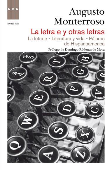 El conjunto de breves, humorísticos y reflexivos textos que conforman las tres obras reunidas en este volumen son una buena muestra de que el enorme talento literario de Monterroso se extiende más allá de la ficción para ofrecernos unas condensadas perlas de su arte y su pensamiento. En La letra e el inquieto Monterroso se zambulle en el género autobiográfico, con el que ya había coqueteado de forma lúdica, y descubre muchas de sus múltiples facetas como escritor y como persona. A modo de caleidoscopio literario, asoman en La letra e algunos de sus gustos, sus pasiones, sus miedos y sus odios. A pesar de su concisión, en los escritos reunidos en Literatura y vida cabe de todo y nada tiene desperdicio. Opiniones, meditaciones y episodios vitales van desgranándose hasta desvelar en su conjunto la quintaesencia de la filosofía de Monterroso. Por último, Pájaros de Hispanoamérica es un original y atractivo ejercicio ensayístico en el que el autor centroamericano dibuja treinta y siete retratos de escritores hispanoamericanos (incluido él mismo) metamorfoseándolos en pájaros y colocándolos «en un mismo recinto, en el cual, si no libres, estarán por lo menos con los suyos».