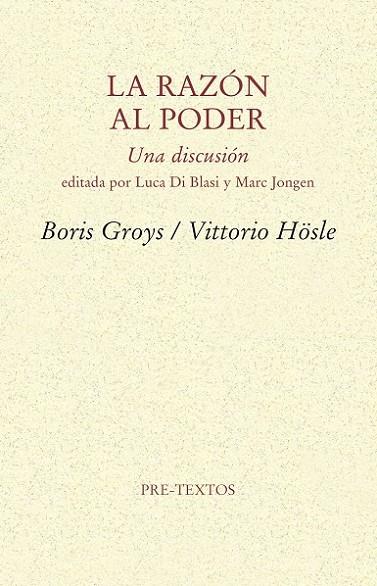 La razón al poder es el título del texto de la transcripción (revisada posteriormente por sus protagonistas) de un debate entre Vittorio Hösle y Boris Groys celebrado bajo el título de ?La razón al poder. Una disputa sobre el poder de la filosofía, el experimento del comunismo, el retorno de la reli...
