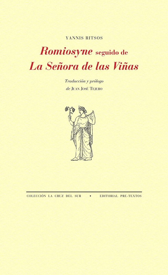 Yannis Ritsos nació en Monemvasiá en 1909 y murió en Atenas en 1990. Está considerado uno de los mejores poetas en lengua griega de todos los tiempos, seguramente el más prolífico. Ha dejado escritos más de cien libros, la mayor parte de poesía, pero entre ellos hay también novela, teatro y extensos monólogos dramáticos. Fue un hombre muy reconocido en vida por la crítica y distinguido con varios grandes premios, como el Premio Nacional de Poesía por su Sonata del claro de luna o el Premio Lenin de la Paz, pero además se convirtió en un símbolo de lucha política y superación personal, muy querido y leído por el pueblo, cantado en multitud de ocasiones y traducido a más de treinta lenguas. De su vasta obra sobresalen Romiosyne y La señora de las viñas, escritas entre 1945 y 1947, justo después de la liberación de Atenas del ejército nazi, en plena guerra civil y antes de ser prisionero y deportado a varios campos de concentración. Constituyen un canto de homenaje a la Grecia de la resistencia y de la insurrección, pero no sólo de este período. Entre sus versos largos se hilvanan las páginas más luminosas de su historia, desde los tiempos de Homero hasta el despertar nacional de 1821, por eso el hilo de Ariadna lo sostienen aquí los grandes héroes de antaño, los marineros anónimos, los iconos de la ortodoxia y los guerrilleros del levantamiento contra el imperio otomano. Eso es precisamente lo que significa la Romiosyne, que junto con La señora de las viñas conforman la gran elegía del pueblo griego.