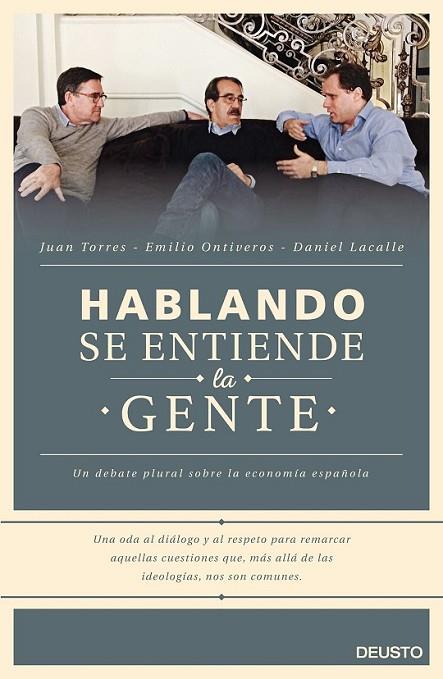Hablando se entiende la gente rechaza los falsos debates de etiquetas y reconoce lo esencial de las ideas, sin partir de la base de que siempre es el otro el que está equivocado, ni abordar con simplezas las cuestiones complejas. ¿Qué medidas económicas necesita España? En estas páginas hay tres propuestas muy distintas y sólo una certidumbre: si todos los españoles afrontásemos las diferencias con la cordialidad, con el respeto y con la disposición al encuentro con que los autores han abordado las suyas, España sería, sin lugar a dudas, el gran país con el que todos soñamos.