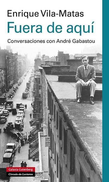 En la estela de su admirado Marcel Duchamp, que nos legó un extraordinario volumen de conversaciones, en Fuera de aquí, Enrique Vila-Matas, incitado por su traductor al francés y amigo, André Gabastou, repasa la gestación y el inagotable anecdotario que se esconde detrás de cada uno de sus libros y traza una inimitable panorámica de su poética singular, desde sus narraciones juveniles hasta su producción última aún pendiente de publicarse. Dotando al diálogo de un sentido nuevo que permite conocer los entresijos de toda su obra, Vila-Matas se nos muestra como el creador de mundos de los shandys o los bartlebys, explorador de nuevos conceptos, como el mal de Montano, inventorde personajes inolvidables como el doctor Pasavento, revisitador de ciudades como París, Veracruz, Lisboa o, tras su salto inglés, de ese Dublín joyciano, que tanto ha marcado el curso de esa enorme aventura que es su obra literaria. Al mismo tiempo, sin perder la solapada ironía siempre presente en sus escritos, nos permite asistir a la galería de escritores que le han influido, de Kafka a Walser, pasando por una extensa lista absolutamente definidora de su particular gusto literario. Y también adentrarnos en los lugares, lecturas e imágenes que han hecho de Vila-Matas uno de los escritores más singulares de nuestro tiempo y un motor inagotable de ideas literarias. Esta especie de autobiografía conversada conforma, pues, un eslabón más en la trayectoria de uno de los grandes creadores de ficciones de la literatura contemporánea, y se erige en un título imprescindible de su bibliografía. Fuera de aquí se completa con una extensa antología de fragmentos escogidos de la obra vilamatiana y con una selección de textos nunca hasta ahora publicados en libro.