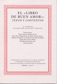 Edición: Centro para la Edición de los Clásicos Españoles.Distribución: Servicio Publicaciones. Universidad de Valladolid.El 'Libro de buen amor' es una obra de naturaleza compleja. Como tal, son muchos los estudios que se han llevado a cabo hasta la fecha para dilucidar e ilustrar las aportaciones fundamentales, así como los aspectos que, aun siendo secundarios, han ayudado a su mejor comprensión. Además, por su estatuto de clásico en el canon de la literatura románica medieval, se han vertido sobre él diversas teorías que han ido ampliando, con mayor o menor fortuna, su original diversidad de significados. La aparición en los últimos años de varias monografías que lo abordan desde diferentes perspectivas hermenéuticas y teóricas permite afirmar que el 'Libro de buen amor' continúa teniendo una vigencia sin parangón en los estudios de la literatura medieval española.