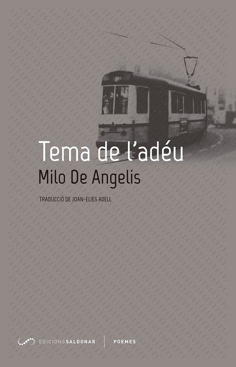 'Tema de l'adéu' és un punt culminant de la producció poètica de Milo De Angelis. Va rebre el premi Viareggio al millor poemari publicat el 2005 a Itàlia i ha estat ràpidament traduït a l'anglès i al francès. El motiu inicial del llibre és la mort prematura de la seva dona, la reconeguda poeta Giovanna Sicari. Tal com escriu l'escriptor milanès en el text que ha redactat expressament per a aquesta edició, «El tema de l'adéu em segueix pertot arreu. I arreu he estimat cada cosa amb l'adéu». Aquesta difícil «biografia lírica» és també un estudi musical sobre la separació, una variació obsessiva sobre la pèrdua. És un extraordinari cançoner amorós que sembla haver estat escrit d'una tirada, com retenint la respiració de l'inici. Milo De Angelis és fidel a una poètica que procedeix amb una precisió absoluta, amb un control tenaç de la paraula. Con afirma Joan-Elies Adell al pròleg, per al poeta «la realitat no té res d?extraordinari, hi domina el gris quotidià, amb tota la seva càrrega d?angoixa. I la tasca del poeta és recollir aquests pocs elements que la vida li ofereix, i carregar-los de significació, però sense cap pretensió èpica ni consoladora». Milo De Angelis és una de les veus primordials de la poesia italiana actual i una referència ineludible per a tota una generació de lectors. Neix a Milà el 1951. Ensenya literatura a Opera, una presó de màxima seguretat de la perifèria de la capital de la Llombardia. Estudia a les universitats de Milà i Montpeller, i es llicencia en Literatura Italiana Contemporània i en Filologia Clàssica. Els temes recurrents de la seva poesia són la mort i la malaltia, el Milà suburbial, la memòria, el temps, la separació dolorosa d'una persona estimada, la feina de professor de literatura, la nit i la relació no sempre fàcil amb les drogues i l'esport vist com una eina per comprendre l'existència pròpia i la dels altres. La seva visió de la realitat oscil·la entre un materialisme gairebé «biològic» i un impuls cap a la redempció humana.