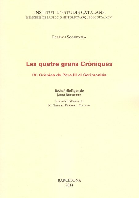 Quart lliurament d?un projecte destinat a posar al dia per a un públic ampli l?edició de les anomenades "quatre grans cròniques" publicada per Ferran Soldevila el 1971. El text ha estat revisat filològicament i es presenta amb ortografia modernitzada. L?abundant anotació de caràcter històric, un dels aspectes més valorats d?aquella primera edició, és aquí completada i corregida a partir de la bibliografia posterior sobre el rei Pere i la seva obra.