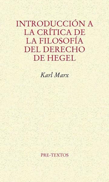 El texto de Marx que aquí presentamos, la Introducción a la crítica de la filosofía del derecho de Hegel, atesora, en sus breves páginas, los suficientes méritos para ser considerado una de las obras más interesantes de su autor. Hasta donde se nos alcanza, este texto no había sido publicado nunca de forma exenta en castellano. Es sorprendente que esta obra resultara hasta la fecha de tan difícil alcance, por cuanto quizá sea ésta de la que más frases se citan. Ése es, precisamente, uno de sus méritos, lo reconocibles que son para el lector en general, no para el especialista, algunas de sus frases; desde su famosísima definición de la religión como ?opio del pueblo?, hasta su referencia a la praxis a través de ese conocido quiasmo que vincula el arma de la crítica y la crítica de las armas, pasando por su comprensión del radicalismo como aquello que acude a la raíz de los problemas, o la imagen que hace de la filosofía la cabeza de la revolución y del proletariado su corazón. Otro mérito que puede atribuírsele es la magistral condensación que realiza Marx de algunos de los temas y problemas de más actualidad a finales de la década de los treinta y principios de los cuarenta del siglo XIX en el pensamiento alemán: la crítica de la religión o la aparición del proletariado como figura política, entre otros.