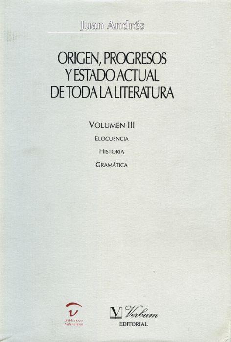 Han debido transcurrir doscientos años para que vuelva a ver la luz uno de los monumentos mayores de la moderna historiografía de Occidente. La obra del abate Juan Andrés (Planes, Alicante, 1740-Roma, 1817) es una pieza cumbre de la historiografía literaria y cultural. Única tanto por su método comparatista, que pretende reconstruir el contexto causal-histórico de la cultura, como por su objeto, de naturaleza universalizadora. El plan de publicación, bajo el cuidado del profesor Pedro Aullón de Haro, ha dispuesto su organización en seis volúmenes, que recogen la primera edición española (Madrid, 1784-1806), más la última parte de la edición de Parma que la completó.