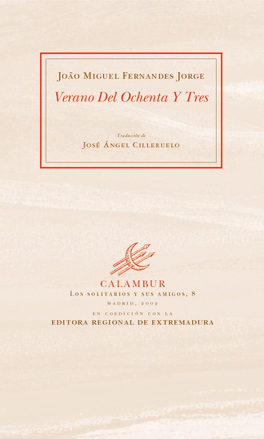 João Miguel Fernandes Jorge (Bombarral, 1943) es autor de una extensa obra literaria que incluye, entre 1971 y 2002, veinticuatro libros de poemas, cinco títulos de narrativa y seis compilaciones de ensayos sobre arte. En Portugal su Obra Poética hasta 1989 está recogida en seis volúmenes, y después ha publicado las tres partes de A Jornada De Cristovão De Távora (1986-1990), Terra Nostra (1992), O Barco Vazio (1994), O Lugar Do Poço (1997), Não É Certo Este Dizer (1997), Bellis Azorica (1999) y el más reciente, Museu Das Janelas Verdes (2002). Sus poemas resultan del diálogo de un sujeto con aquello que le rodea en su tránsito cotidiano. Diálogo que tiene como único fin determinar la impronta emocional que el mundo, las ideas y el arte dejan en quien los mira. El límite que nunca se roza es el de la objetivación de la experiencia. Ésta se mantiene siempre, gracias a ciertos recursos estilísticos, en la frontera nunca traspasada de la singularidad del poeta; el lector que busque intercambiar experiencias tipificadas con esta poesía difícilmente le encontrará sentido; el diálogo feraz se establece entre subjetividades. Verano Del Ochenta Y Tres, título de uno de los poemas que se ha elegido para dar nombre a la presente antología, reúne una selección de la obra de João Miguel Fernandes Jorge escrita entre 1971 y 1999, una de las poéticas más renovadoras y sorprendentes de la poesía portuguesa contemporánea.