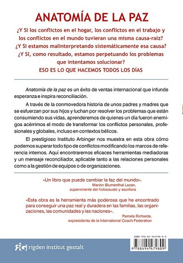 ¿Y SI los conflictos en el hogar, los conflictos en el trabajo y los conflictos en el mundo tuvieran una misma causa-raíz? ¿Y SI estamos malinterpretando sistemáticamente esa causa? ¿Y SI, como resultado, estamos perpetuando los problemas que intentamos solucionar? ESO ES LO QUE HACEMOS TODOS LOS DÍAS Anatomía de la paz es un éxito de ventas internacional que infunde esperanza e inspira reconciliación. A través de la conmovedora historia de unos padres y madres que se esfuerzan por sus hijos y luchan por resolver los problemas que están consumiendo sus vidas, aprenderemos de quienes un día fueron enemigos acérrimos el modo de transformar los conflictos personales, profesionales y globales, incluso en contextos bélicos. El prestigioso Instituto Arbinger nos muestra en esta obra cómo podemos superar todo tipo de conflictos modificando los marcos de referencia internos. Aquí encontraremos eficaces herramientas mediadoras y un mensaje reconciliador, aplicable tanto a las relaciones personales como a la gestión de equipos o de organizaciones.