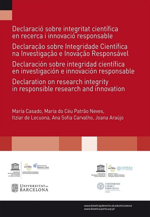 En aquest volum, elaborat conjuntament per les Càtedres Unesco de Bioètica de la Universitat de Barcelona (UB) i de la Universitat Catòlica Portuguesa (UCP) i en edició quatrilingüe en català, portuguès, castellà i anglès, s?analitzen la integritat científica en el marc de la recerca i innovació responsables, qüestions fonamentals per a la bioètica que, actualment, s?han convertit en elements estructurals de les polítiques de recerca europees i internacionals.