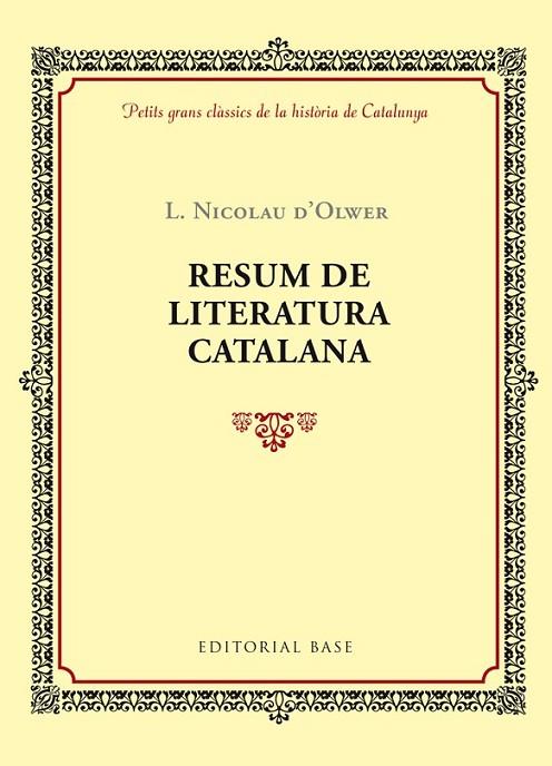 El Resum de literatura catalana de Nicolau d'Olwer continua essent un dels manuals més rics i suggeridors que s'han escrit mai, en qualsevol llengua, sobre literatura catalana. L'erudit explica l'evolució de la literatura catalana en el marc europeu i analitza amb pinzellades d'admirable agudesa les obres més representatives.
